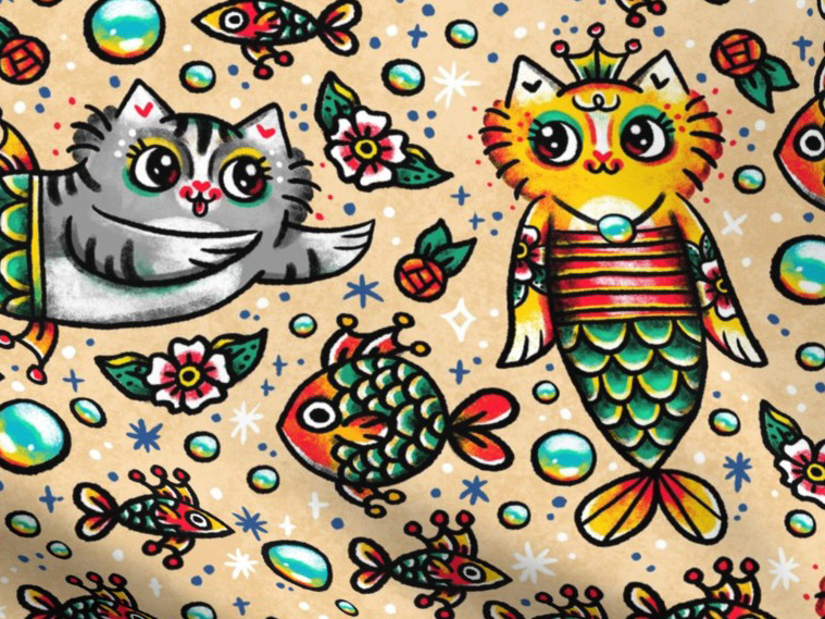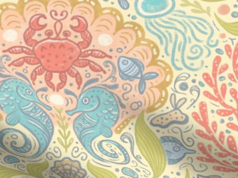 My favorite part was hiding little fish in the white spaces. Can you spot them all? As a kid, I loved those I Spy books and finding little hidden creatures in picture book illustrations. I want to evoke that sense of unexpected magic in my pattern designs.